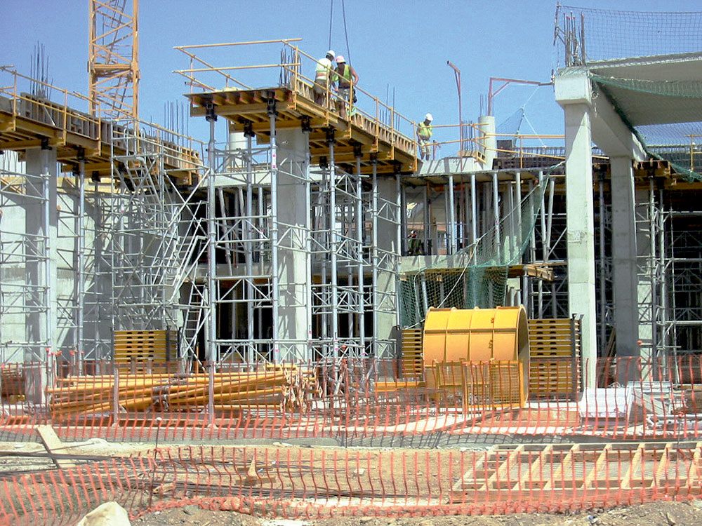 The CC-4 system provided the advantages related to aluminum, such as lightness. This product enabled the prior assembly of the grid and the subsequent placement of the working platform. It has a single remaining element, the drophead, which sped up the forming and stripping times, and facilitated the recovery of the material without any part falling to the floor. The profitability of the project was ensured since through the use of this system, combined with others such as VR Tables and ENKOFLEX (for stairs), it was possible to rotate teams with the subsequent reduction of necessary material.