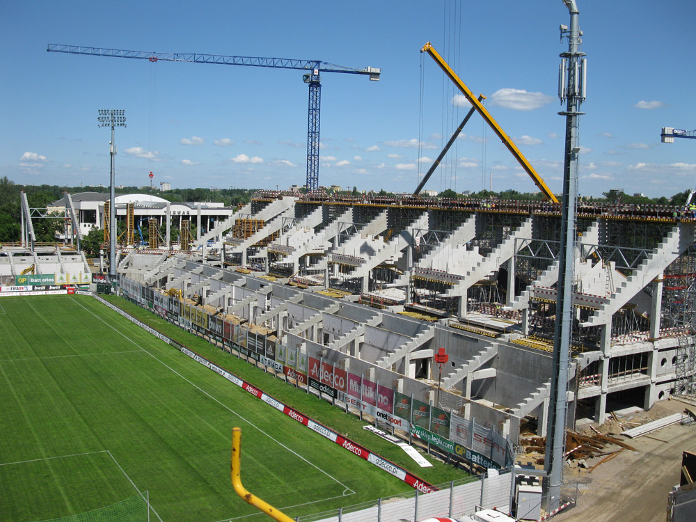The aim of the expansion and modernization of the Legia stadium was to comply with the established requirements for being able to play UEFA Cup or Champions League games. Part of the construction work consisted of demolishing three stands, maintaining only the historic facade of the fourth one. The space under the eastern and southern stands has been designated as a 790 vehicle parking facility. The stadium has also been equipped with new locker rooms, press center, restaurants, and various services in the north stand, while the VIP area is located in the west stand.