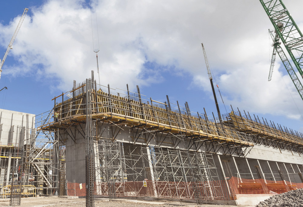 - Outside: 21 m2 big formwork units on climbing bracket.