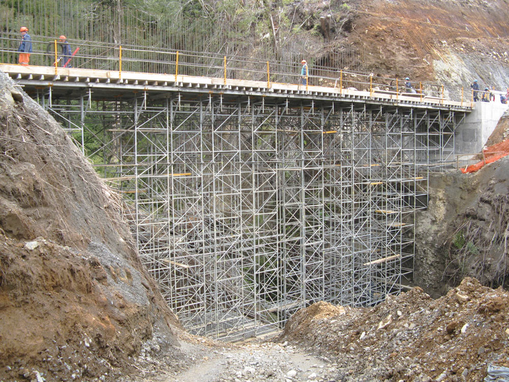 The water canals were built with NEVI vertical formwork. T-60 Shoring and BTM horizontal formwork made up the platform for the construction of the canal, bridging varying levels and ravines.