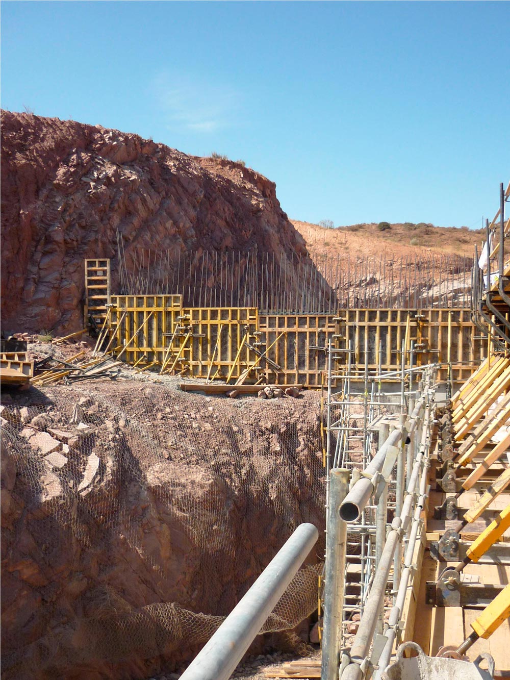 This large project consists of the construction of the dam itself, the diversion dam at the Jalon River and a water tunnel between the rivers Grio and Jalon.
