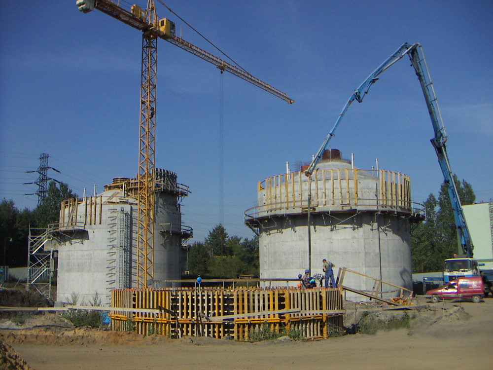 The septic tank has two structures with a high degree of complexity: radial walls with a 16 m diameter and a height of up to 12.9 m, made in 5 layers. It is worth mentioning two of the solutions provided in this facility: