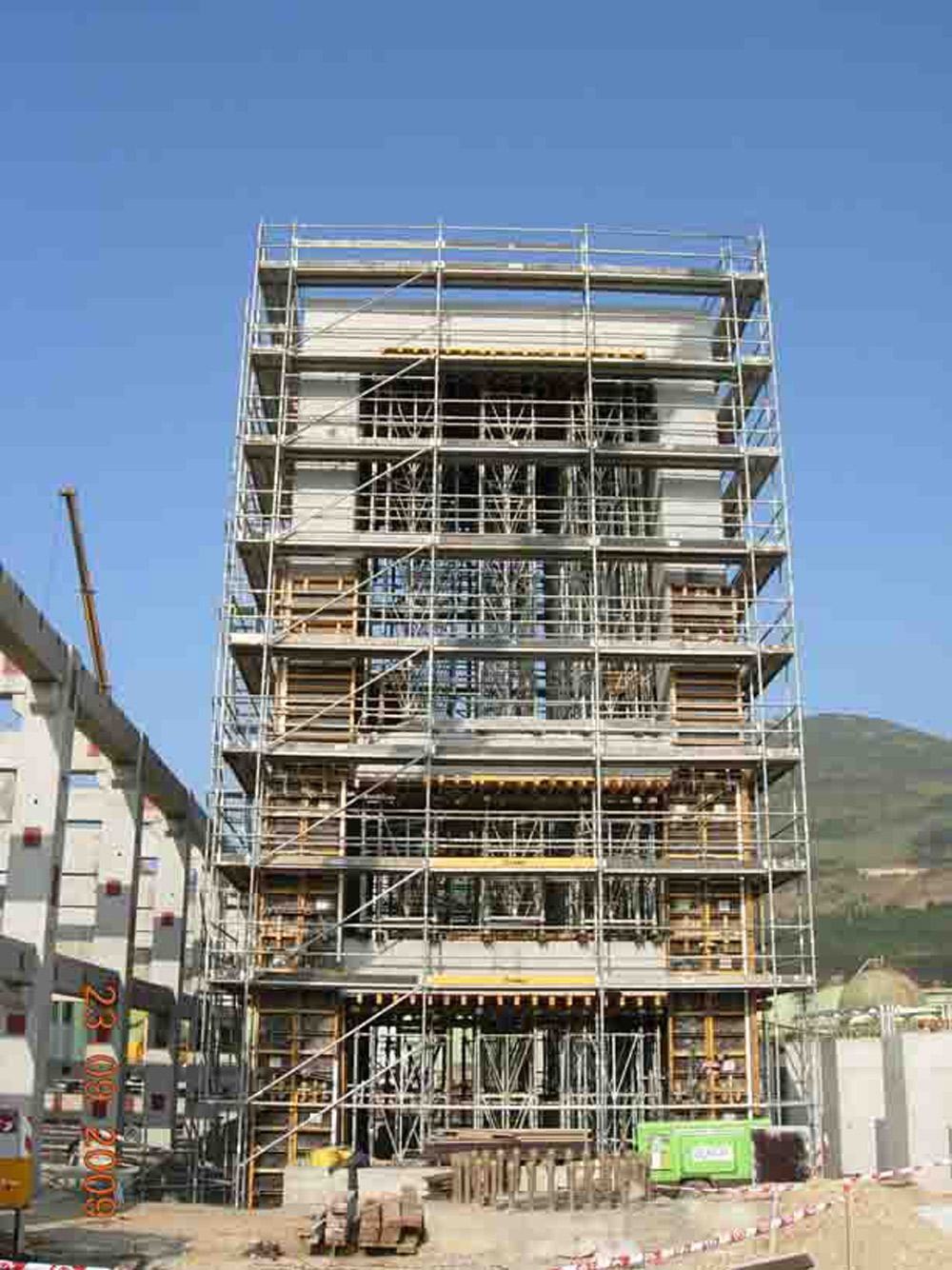 As a shoring system for vertical loads and formwork support for the ENKOFORM HMK slabs, towers were used that guaranteed robustness, safety, as well as a high flexibility of use. In fact, as the construction work progressed, the load structure grew from one floor to another.