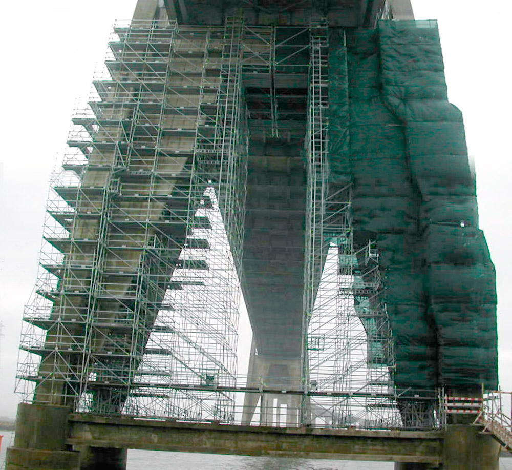The singularity or complexity of this job was grounded in the changing section of each one of the side towers comprising the pier. Thanks to the versatility of the BRIO Multidirectional Scaffolding, the project solution was feasible.
