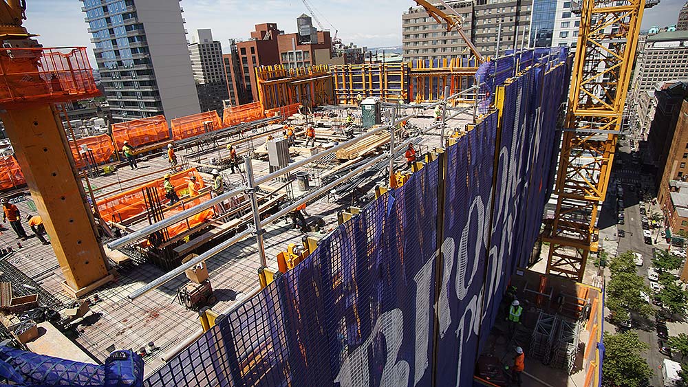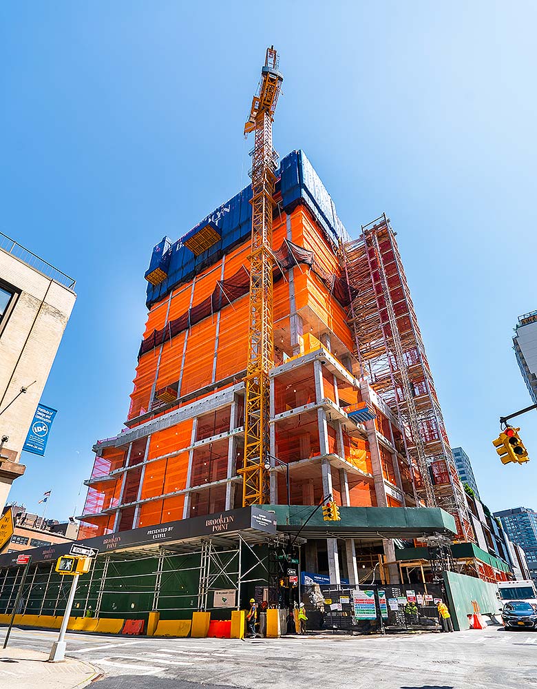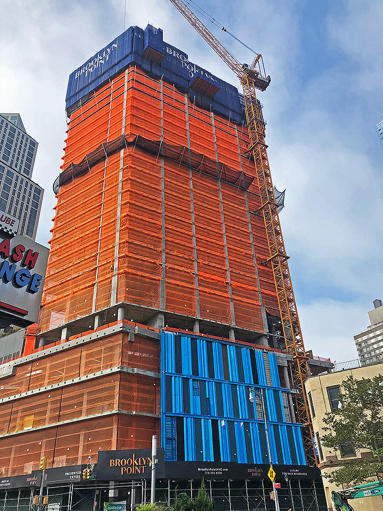 Brooklyn Point is over 720 feet tall with 68 stories. The client chose to use the HWS windscreen, a perimeter cocoon that focuses on perimeter safety for workers in high rise buildings.
