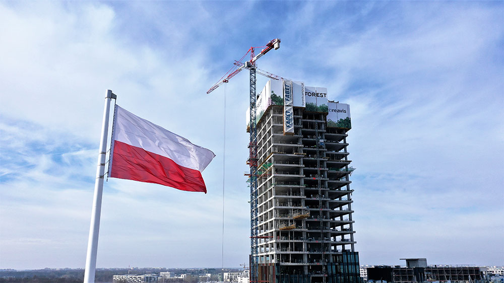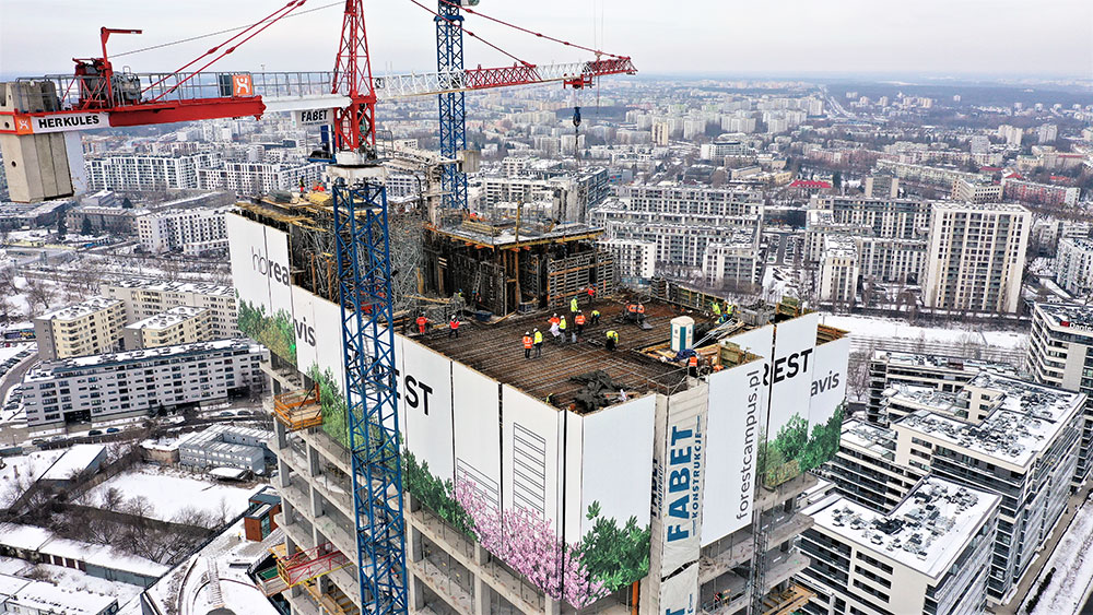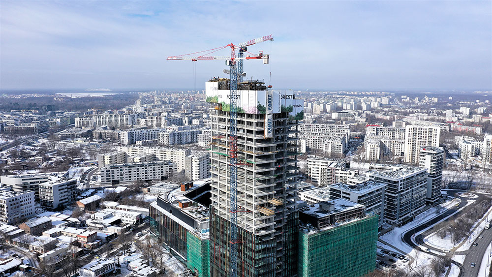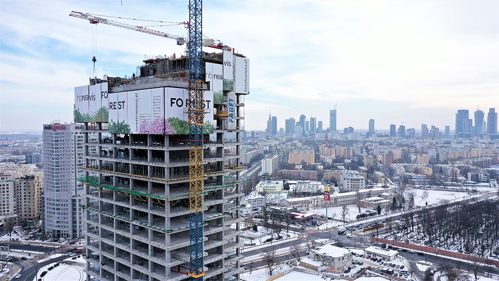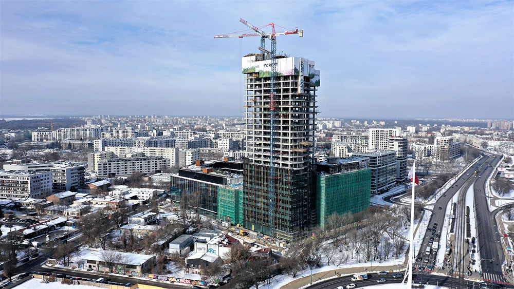 In Warsaw, the Forest office and service complex, a 120-metre high skyscraper, is under construction. The new building will be a green oasis, with green areas the size of two football pitches.