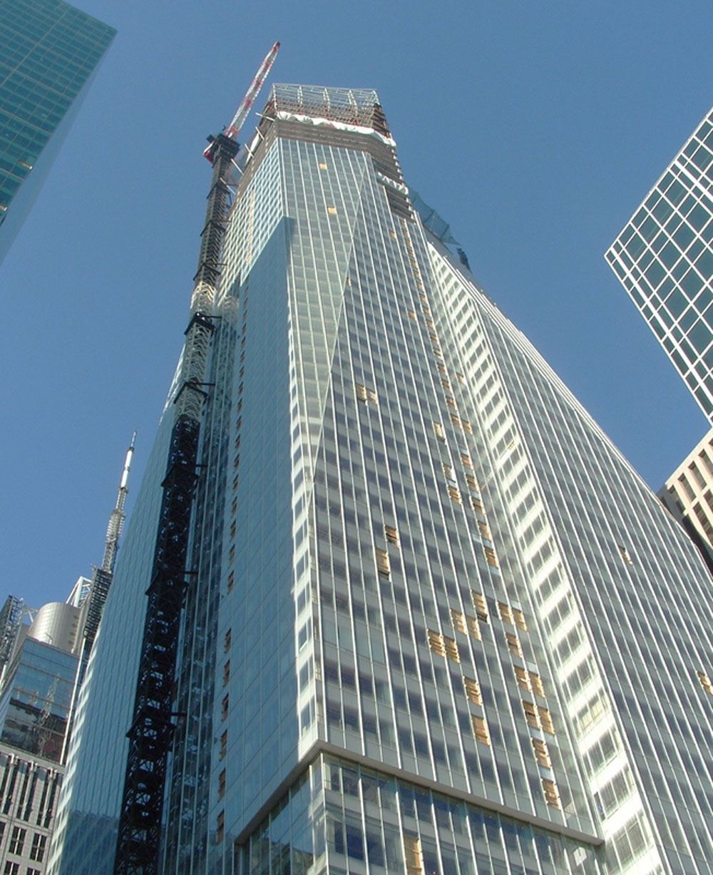 The 300 m height and its 200,000 m2 make up a glass tower, headquarters of the Bank of America. This building displays defined vertical lines, that with the movement of the sun and the moon, modify the perception of the building.