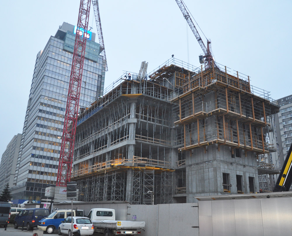 Standard ATR-P self-climbing platforms were used for the first two cores. The solution included three working platforms and a load-bearing structure supporting the ORMA modular formwork.