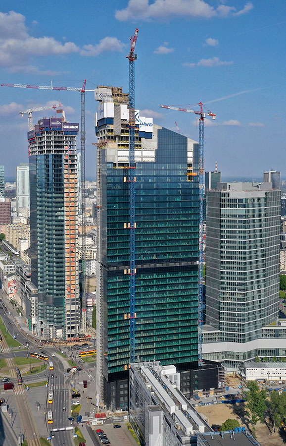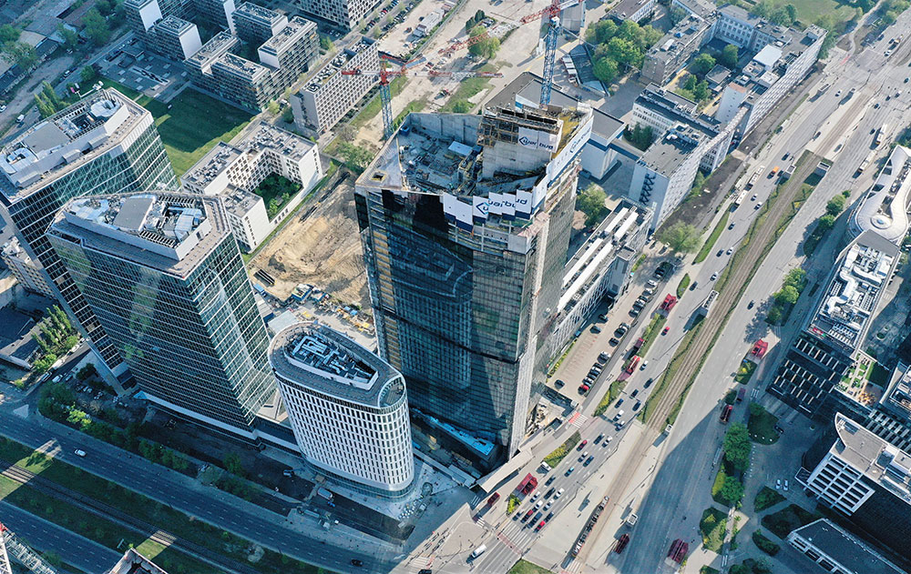 The building of 195 m will consist of 45 storeys, of which 30 will be for offices, 4 for commercial and service premises, 4 for technical rooms, and two for spacious Skybar, from which you can admire the panorama of Warsaw. In addition, a 5-level underground car park is under costruction.