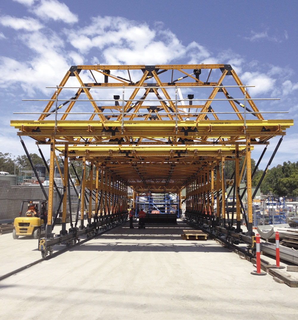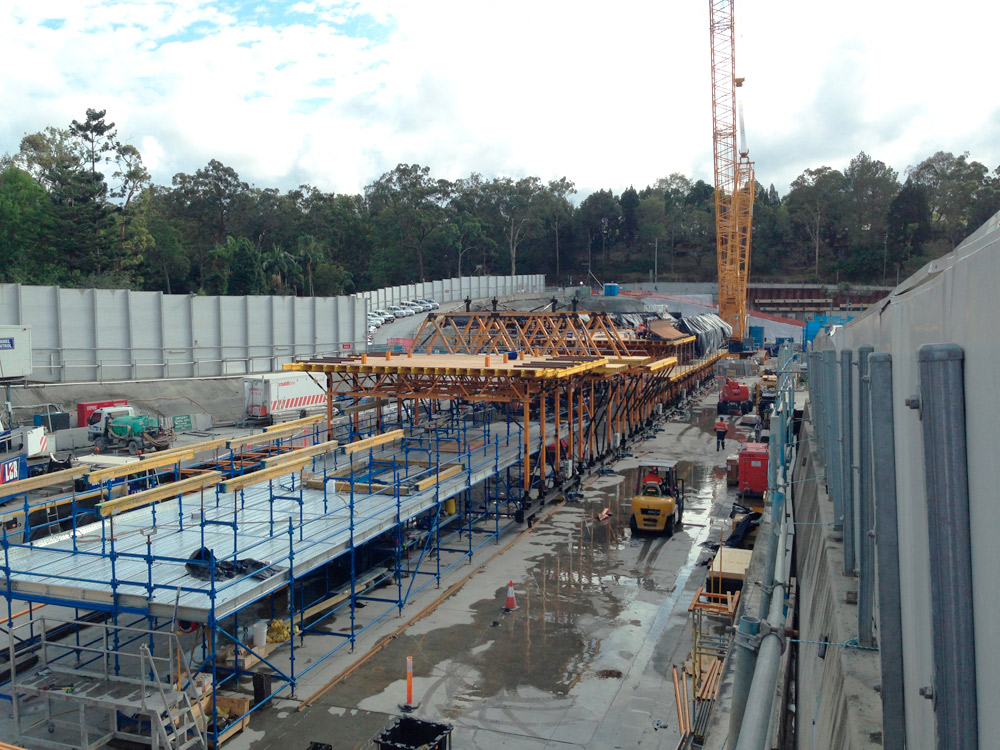 The 4.6 km long Brisbane City Council’s Legacy Way tunnel is going to connect the two busiest roads of the region. Together with two 12.4 m diameter and 110 m long tunnel-boring machines, cut-and-cover tunnel form carrier were used for the entrance portals and tunnel exits.