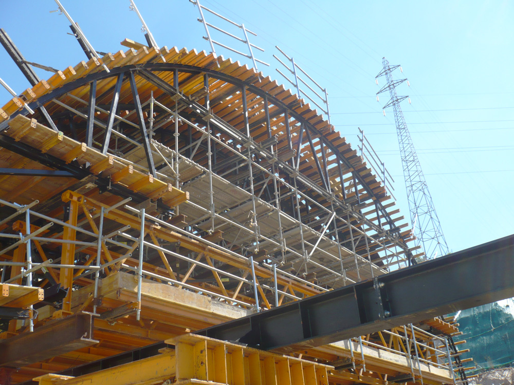 The reuse of the material has been ongoing, since the shoring towers and main support beams along with the other systems were dismantled after use and assembled again at the next pouring stages for subsequent movement of the structure.