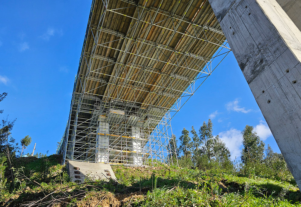The technical solution developed by ULMA was the result of a continuous collaborative process between the engineering, logistics, and assembly teams, working closely with VSL. Technical meetings made it possible to adapt the proposal to the environmental and structural constraints, achieving a functional scaffolding geometry, compatible with the existing infrastructure and with the needs of the future intervention.