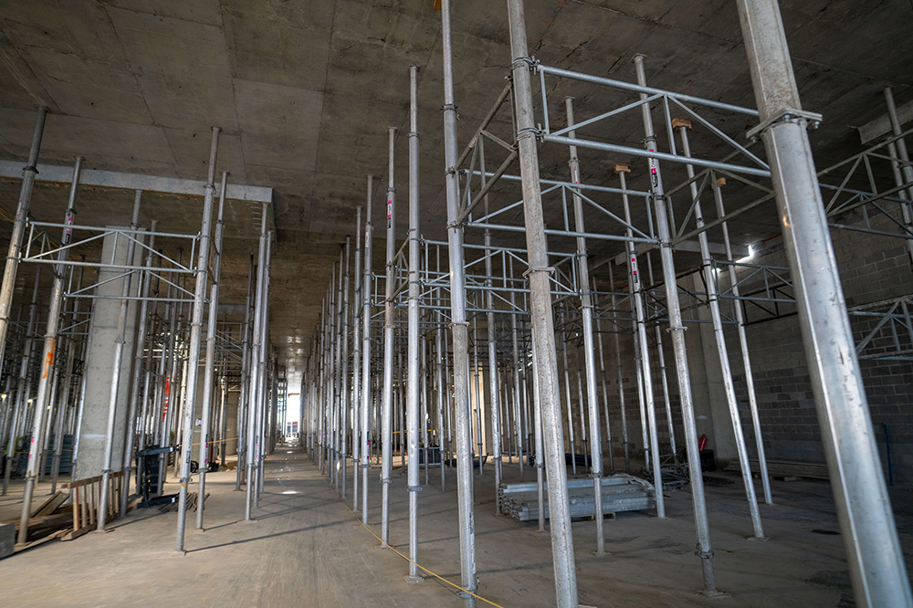 Additionally, ALUPROP towers were incorporated to support column heads and slabs at heights of up to 10 metres. Made of aluminium, they combine high load-bearing capacity with a lightweight structure, making them easy to handle, assemble and transport. Their ability to be stacked and braced allows great heights to be reached while maintaining structural safety and stability, and their versatility allows them to meet both initial shoring and reshoring requirements.