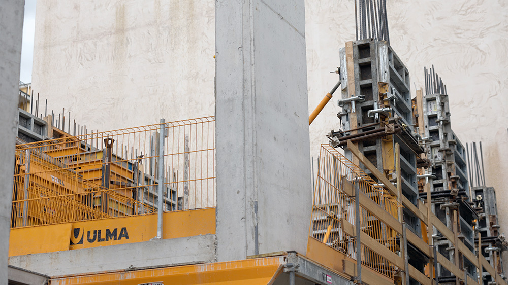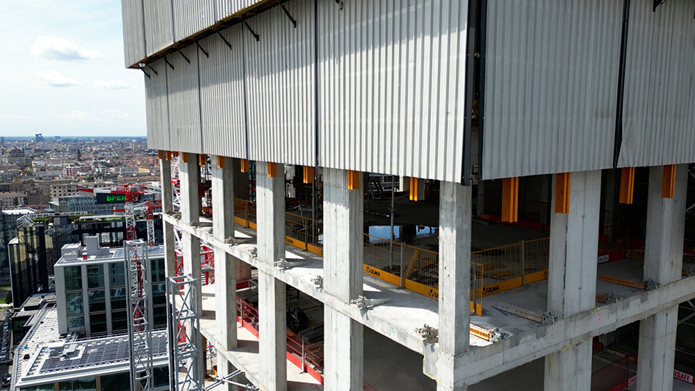A wide range of equipment has been used in this complex and ambitious project: CC-4 aluminium formwork for the floor slabs, ORMA modular formwork for the walls, CRL circular formwork for the columns and various shoring systems. ATR self-climbing formwork was used in the building cores. The safety of the workers during work inside the structure was ensured by the installation of HWS perimeter protection screens.