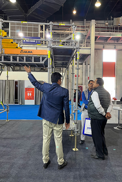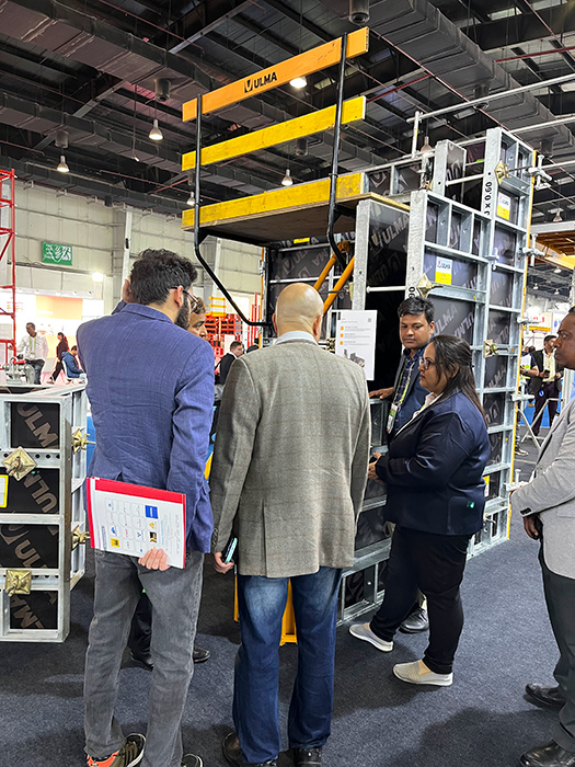 Among the products exhibited at ULMA's booth, visitors could get a closer look at the aluminum modular formwork CC-4, the vertical panel formwork LGW, our temporary accesses based on our ringlock scaffolding BRIO, our shoring system BRIO and our frame shoring tower T-60. However, the exclusive presentation of our recoverable modular formwork ONADEK in the Indian market was undoubtedly the event that caused the greatest excitement among visitors. Presented at Bauma India as the innovative formwork that marks a new era in slab formwork, visitors were able to see in situ the advantages offered by this system that combines all the advantages of modular and flexible drophead systems, providing remarkable reductions in assembly and dismantling times with high standards of safety and ergonomics for the worker.