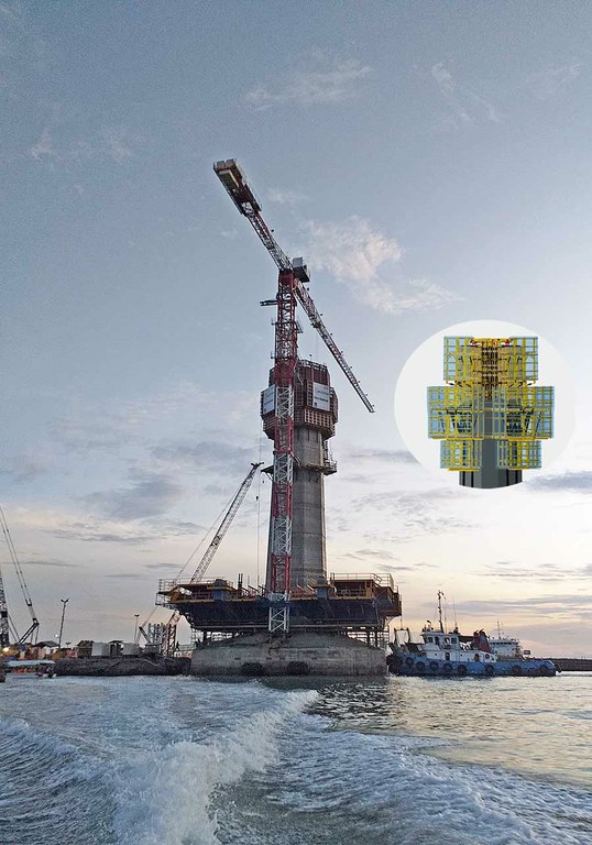 This tool allowed us to verify that with this technical solution, there was no interference at any point along the entire shaft of the pylon or in each layer, making it possible to develop a suitable design in each phase. So, two formwork solutions and the ATR self-climbing system were installed, one for phase 1 and the other for phases 2 and 3, as the geometry changed after the deck of the bridge.