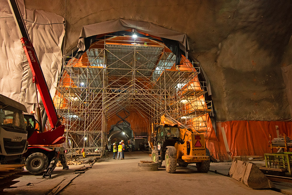 The main challenge in urban construction is optimising space. In the case of this jobsite, the limited storage areas in the city centre have been solved by the intelligent reuse of materials and solutions in the interior. Coordination was the key: six formwork and scaffolding carriages operated simultaneously in the tunnel. This strategy maximised efficiency in an environment with limited space.