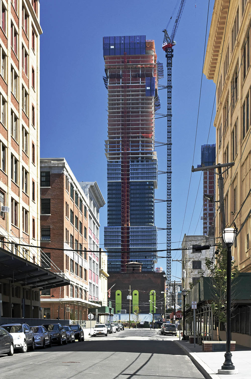 A series of buildings are being constructed along the banks of the Hudson River with spectacular views of Manhattan. The Harborside Tower was designed with 69 storeys, 763 residences, and a total height of 214 m. It is now the tallest residential building in New Jersey.