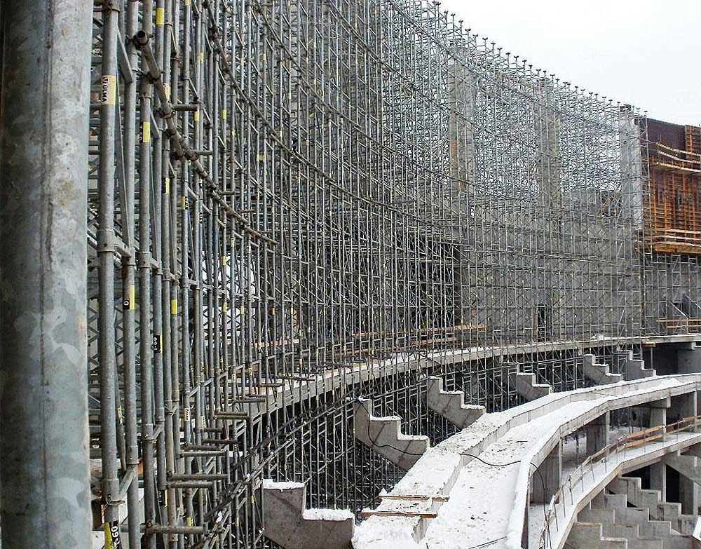 This was a comprehensive project requiring many distinct solutions, the most spectacular of which was the shoring for the upper ring, set at a height of 40 m with a circumference of 400 m.
