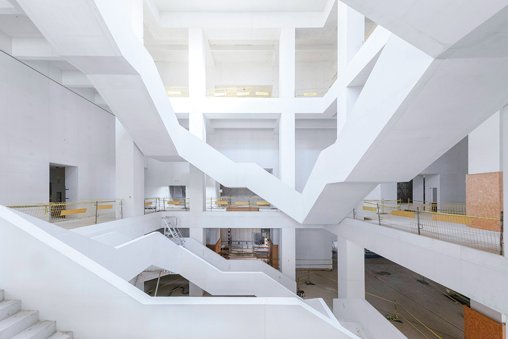 The white fair-faced concrete walls perfectly combine with the interior spaces, while the building's size is integrated into the cultural environment of the city. The engineering team of ULMA in Poland has worked continuously on the studies and on the application of formwork and scaffolding to ensure the highest quality of concrete surfaces. In addition to its expertise and experience, ULMA has provided its logistical capacity which, given the large scale and complexity of the project, had to guarantee equipment deliveries according to a strict schedule and, above all, make it possible to supply the site with pre‑assembled formwork structures.