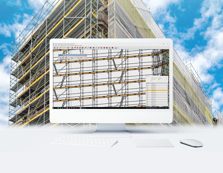 Scaffmax®, a SketchUp® add-in, is yet another tool that we make available to complement our digital toolkit for scaffolding. Scaffmax® makes it possible to select the most relevant criteria for the client and within seconds assemble BRIO and DORPA scaffolding for a 3D structure previously generated in SketchUp® Pro. The software not only makes it possible to generate material lists and plans with a single click, it also features smart insertion points to make manual adjustments.