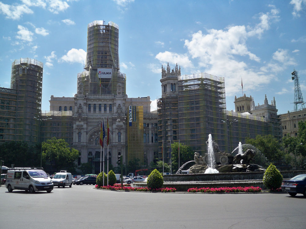 Andamio certificado de fachada formado por elementos tubulares (pies, brazos y diagonales), con una tecnología de unión y montaje rapidísima basado en el disco BRIO.