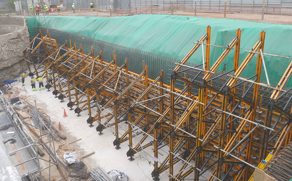 Encofrados a una cara para muros de hasta 10,5 m. Configurable y compatible con todos los paneles ULMA.