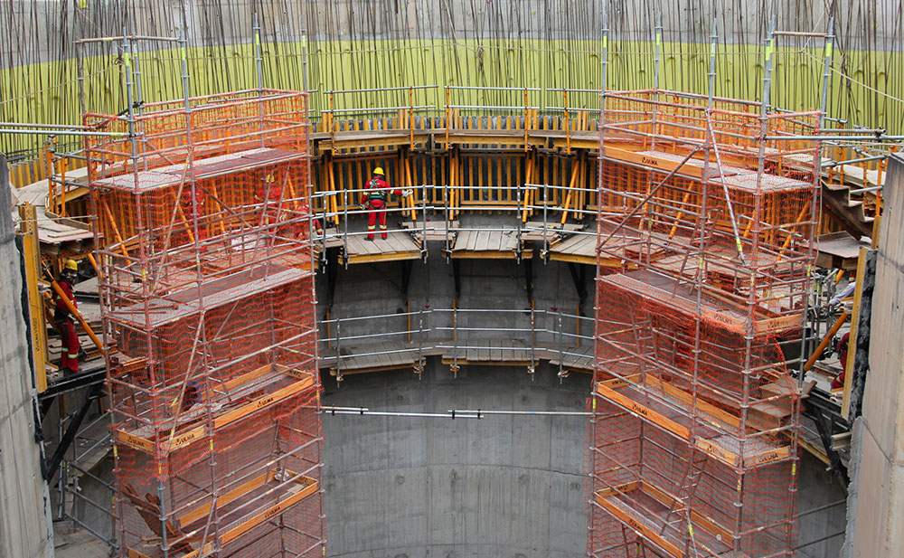 La plataforma de trabajo y encofrado se pueden izar simultáneamente a la siguiente fase.