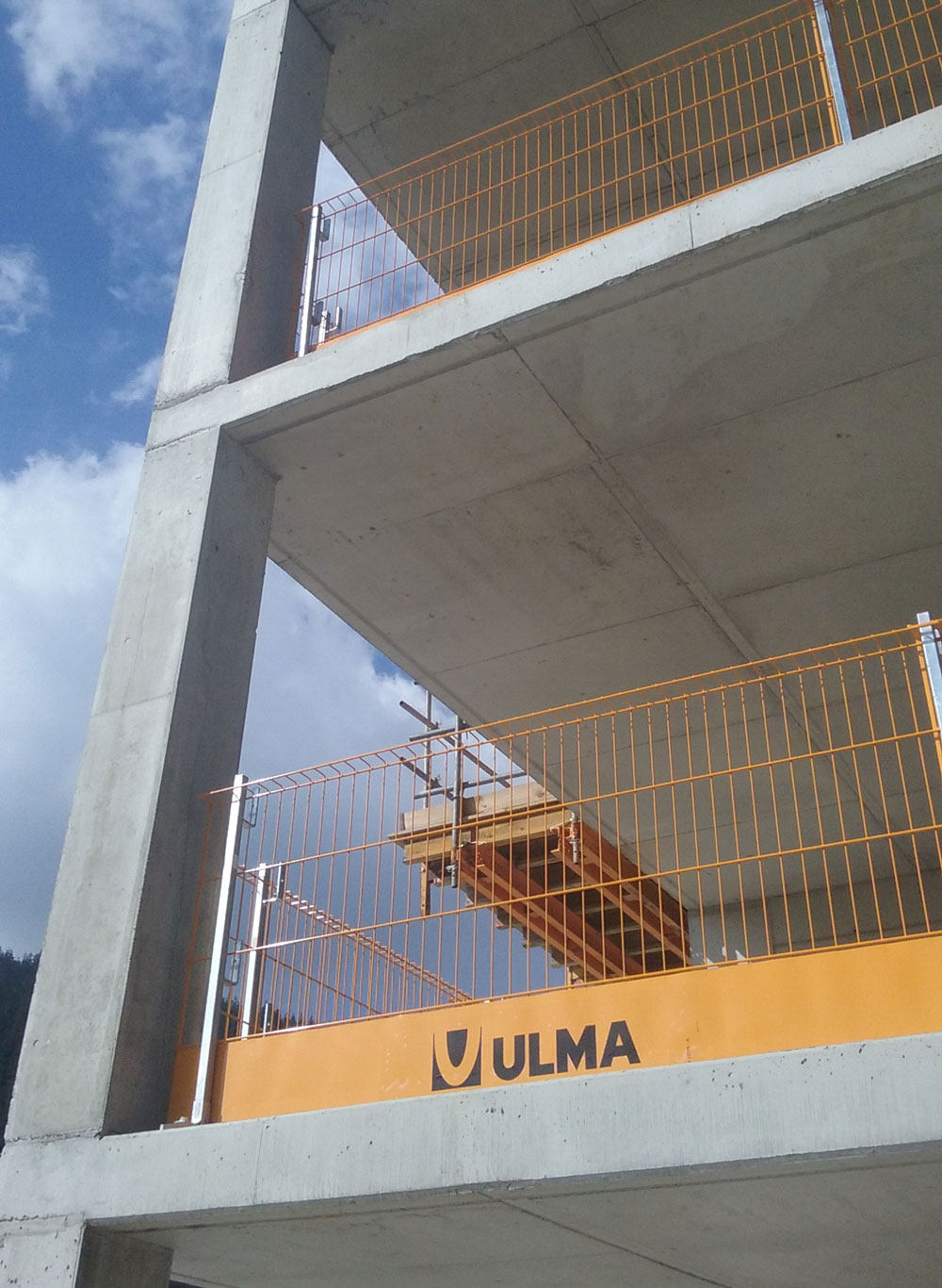 La barandilla MBP es un sistema de protección temporal anti caída, concebido para ser montado tanto en estructuras de hormigón como en los sistemas de encofrado ULMA.