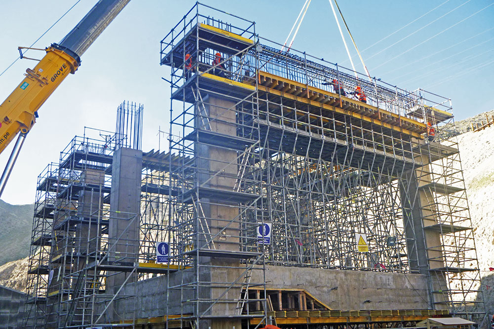 Una amplia gama de encofrados y andamios, incluidas torres fijas y móviles, estructuras suspendidas y en voladizo, han permitido solucionar todos los requisitos y necesidades de los sectores involucrados en este proyecto.