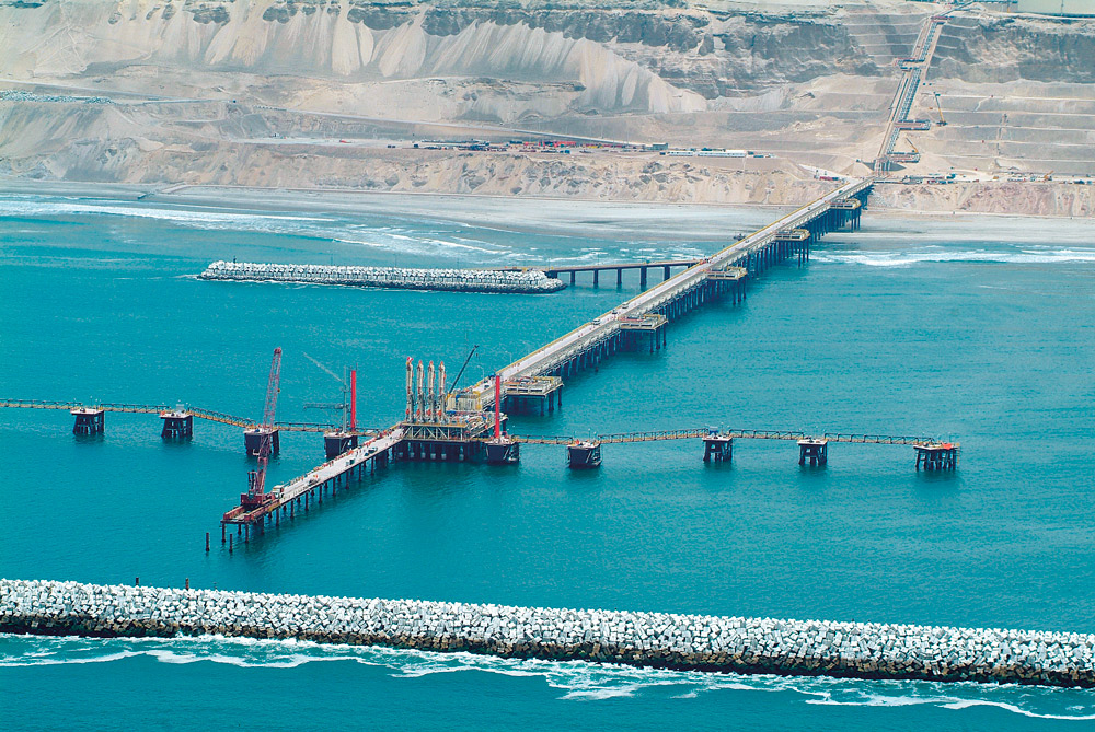 Para la ejecución del terminal marítimo se construyó un puente, de pilotes, de 1,4 km de longitud, que se extiende desde la costa hasta la plataforma de carga. La estructura del muelle está conformada por: pilotes, cap beam, vigas longitudinales, riostras, losas prefabricadas de hormigón, barandillas y tuberías de servicio.