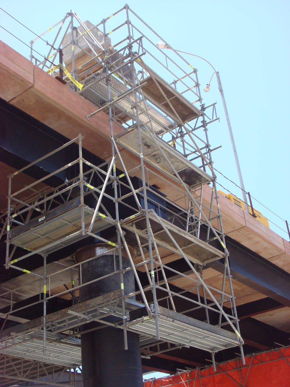 Se proyectó una plataforma ubicada debajo de cada uno de los ejes del muelle con el Sistema BRIO. Asimismo se ejecutó una estructura de andamio en voladizo, con una longitud de 35 m, para llevar a cabo labores de pintura, soldadura etc. Este andamio fue rotando desde el primer eje hasta el último. Ha sido el primer proyecto en Perú con andamios en voladizo de estas magnitudes.