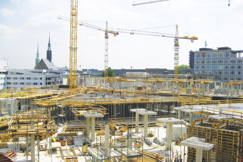 Los capiteles de columnas, ejecutadas con encofrado articulado F-4 MAX, se realizaron con Mesas VR trasladables. Sus vigas VM-20, forradas con tablero de 21 mm, garantizan un alto rendimiento en grandes áreas y soluciones repetitivas.