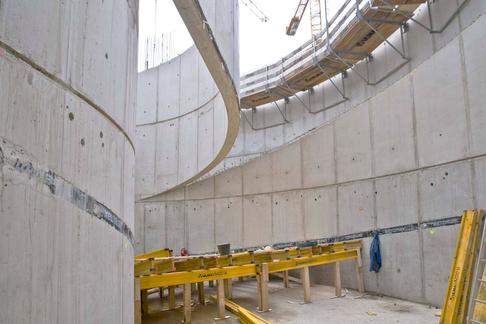 El encofrado vertical ORMA se ajustó con precisión a la ejecución de muros y huecos de escaleras. Su amplia gama de paneles permite la formación y unión sencilla de grandes conjuntos, además de ejecutar esquinas distintas a 90º con pocos accesorios.