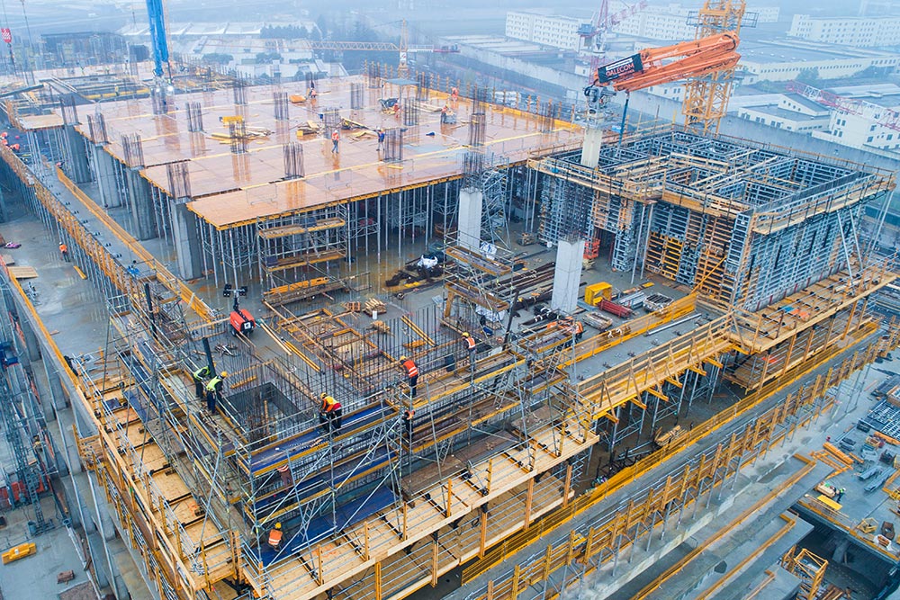 Para la realización de los huecos de escalera, se han utilizado más de 7.000 m² de encofrado modular ORMA en combinación con el sistema autotrepante ATR. Al disponer de grupos hidráulicos, se ha elevado toda la estructura de manera simultánea sin necesidad de grúa, liberándolas así para otras labores en la obra, incrementando la eficiencia/productividad.