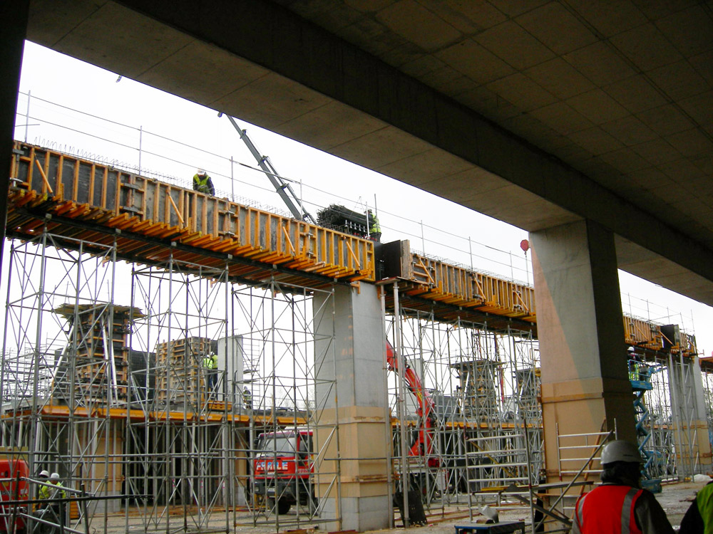 Los pilares de planta cuadrada de 1,5 m y casi 9 m de altura, al igual que las vigas, requirieron de un acabado de alta calidad.Para ello, se montó in situ el Encofrado Vertical ENKOFORM V-100 que permitió el vertido del hormigón en una única tongada.