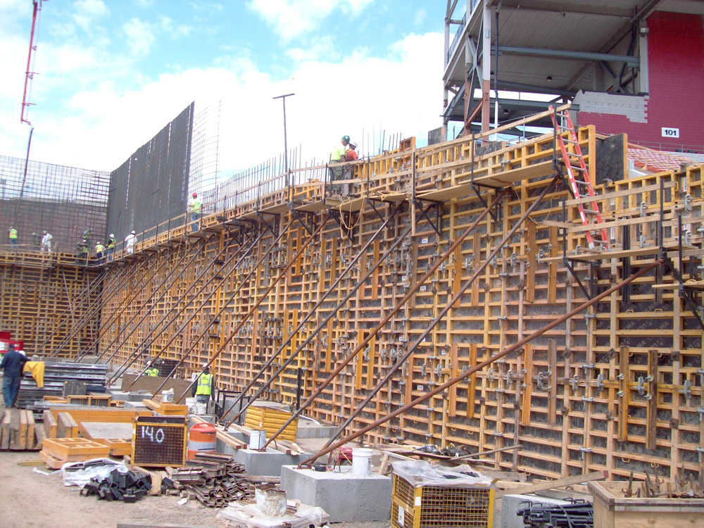El breve plazo de ejecución de este estadio de fútbol exigió soluciones eficaces tanto en productos (encofrados y cimbras) como en el suministro.