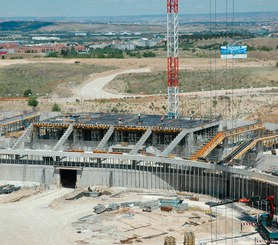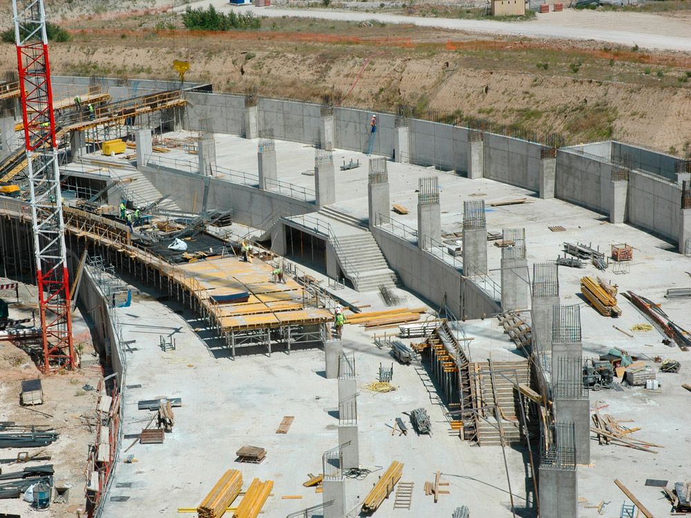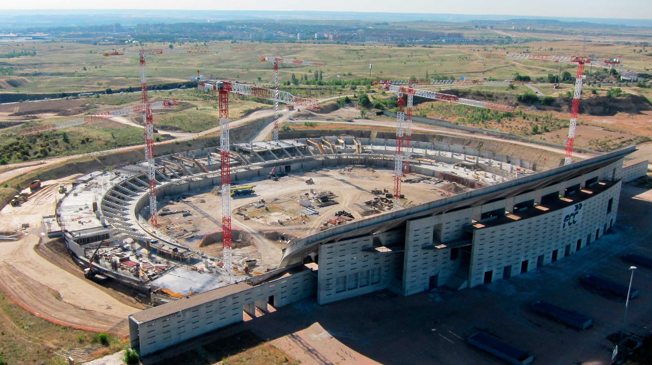 Para la ampliación del estadio se ha construido un conjunto de grandes pórticos radiales en diferentes niveles, con luces máximas de 15,9 m y sobre los que se han dispuesto las piezas de hormigón prefabricado. Así, se ha dado forma a la grada del estadio. La construcción de esta parte del complejo se ha realizado con el encofrado ENKOFORM apeado sobre cimbra ligera.