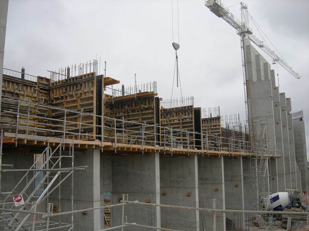 - Exterior: paños de encofrado de 21 m2 sobre la consola de trepado.