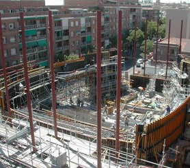 En la ejecución de losas se empleó el Encofrado Horizontal RAPID, resolviendo su apeo mediante cimbras para salvar las diferentes alturas de planta.