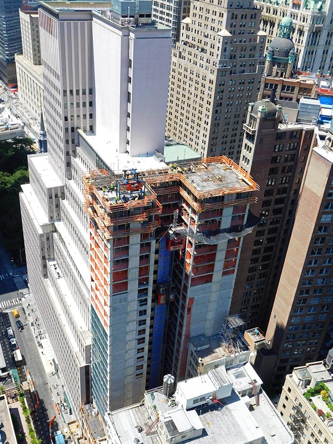 Para el encofrado de losas de las 30 plantas, el cliente ha seleccionado el encofrado modular de aluminio CC-4. Al disponer de cabezales de caída es ideal en aquellos espacios donde las exigencias de seguridad son elevadas. La temprana recuperación del material ha reducido la necesidad de equipos en obra y una menor utilización de la grúa. Al requerir menos puntales por m² ha facilitado los movimientos bajo la losa, así como el desplazamiento de materiales, importante a medida que el edificio crece en altura.