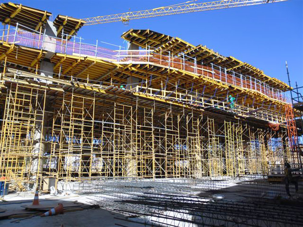Para obtener los mejores resultados, se combinaron distintos tipos de encofrados: en muros y pilares se empleó el encofrado modular COMAIN, mientras que el RAPID se aplicó en losas macizas y grandes vanos. La Escalera BRIO facilitó siempre el acceso a las diferentes plantas.