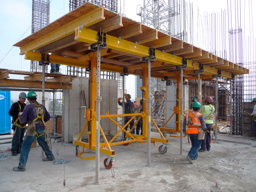 En cada piso se emplearon 50 mesas, fáciles de manipular, obteniendo así altos rendimientos en obra. El traslado de mesas fue de 12 unidades por día.