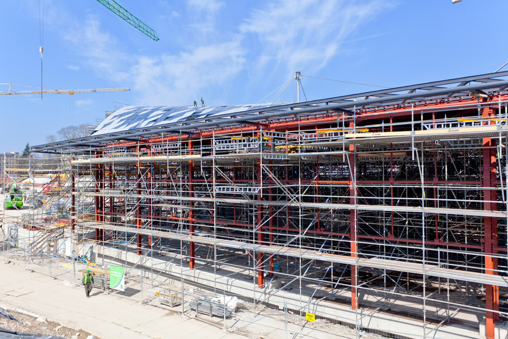 ULMA ha suministrado para esta obra casi 200.000 m³ de andamio multidireccional BRIO para apear las estructuras de acero de tres claraboyas de cubiertas A, B y C, de dimensiones 80 x 95 m, 40 x 110 m y 40 x 125 m, respectivamente.