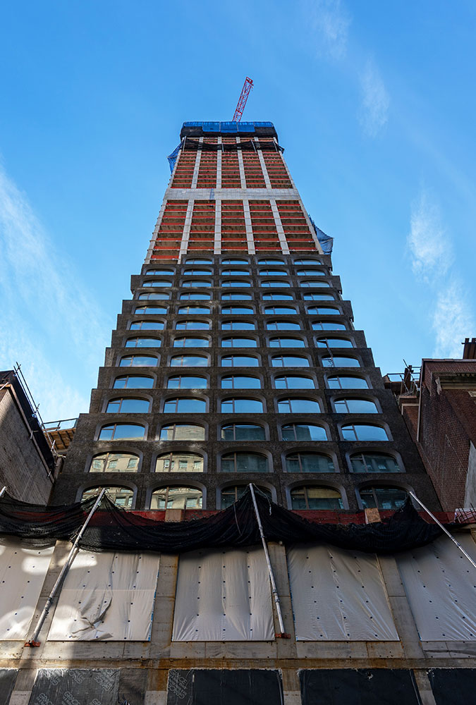 Con 66 pisos y cerca de 245 m de altura, el primer rascacielos diseñado por Adjaye en Nueva York, se basa en el estilo de los edificios del entorno, aunque con una propuesta diferente a las convencionales torres de grandes vidrieras. Su fachada personalizada cuenta con ventanas arqueadas de gran tamaño y detalles de bronce creando un diseño sofisticado y expresivo que redefinirá el paisaje del Bajo Manhattan. El edificio, inmediatamente adyacente al puente de Brooklyn y al One World Trade, contará con 244 residencias y más de 6.700 m² de servicios, incluyendo una piscina, un gimnasio y una cancha de básquet.