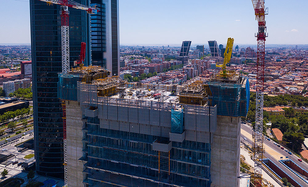 En un proyecto de esta envergadura con una superficie de más de 50.000 m² en la torre y 7 sótanos bajo rasante que suman otros 150.000 m², se han empleado 79.365 m³ de hormigón y 9.427.217 Kg de acero en su construcción.