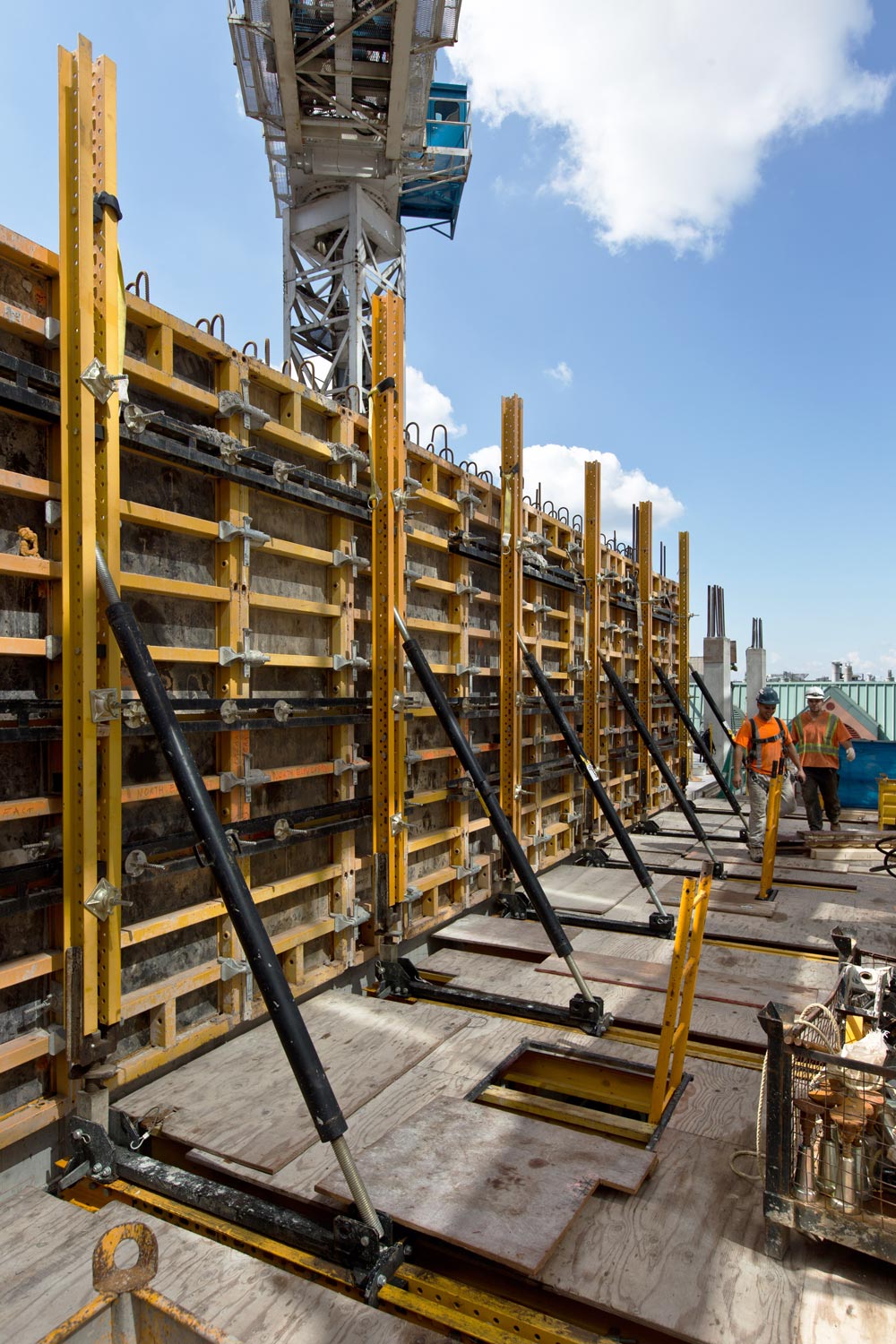 ULMA puso a disposición de la obra el Sistema Trepante Guiado RKS, como plataforma para el encofrado de los muros exteriores, y la protección perimetral HWS.
