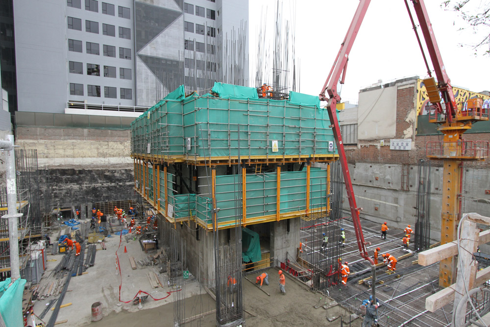 Al no depender de la grúa y de la climatología, el ritmo constante de trabajo ha incrementado la productividad. Además, al disponer de tres plataformas de trabajo (principal, hormigonado y recuperación de conos) el sistema autotrepante garantiza la seguridad de los trabajadores en cualquier altura y durante todo el proyecto.