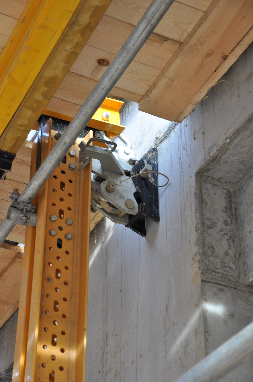El sistema autotrepante ligero RKS se izó 11 veces mediante 4 cilindros hidráulicos y el grupo hidráulico portátil. Cada izado fue de 3,7 m.