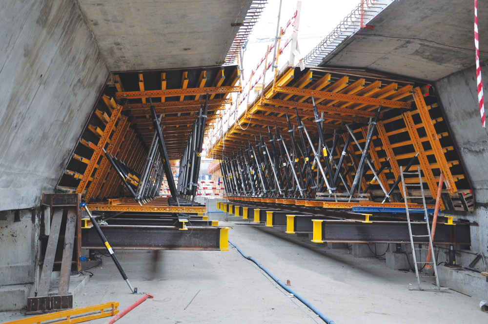 Para ejecutar el fondo, los hastiales y la losa del viaducto se utilizó el encofrado de forma ENKOFORM HMK.